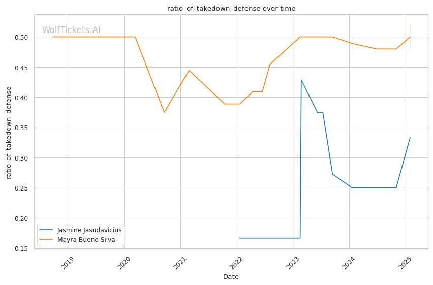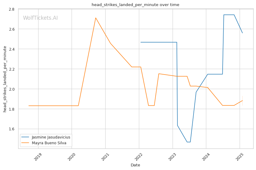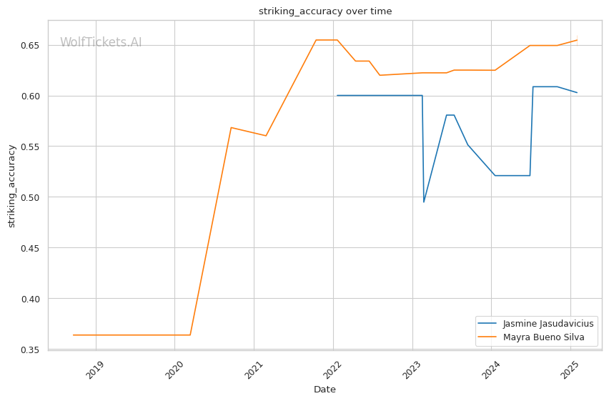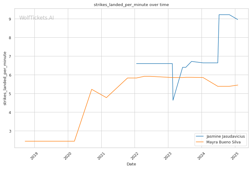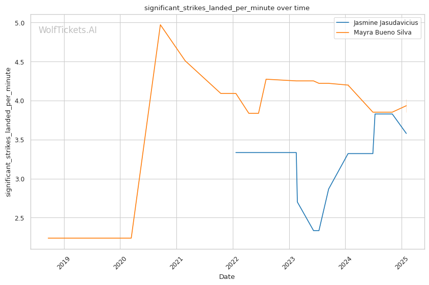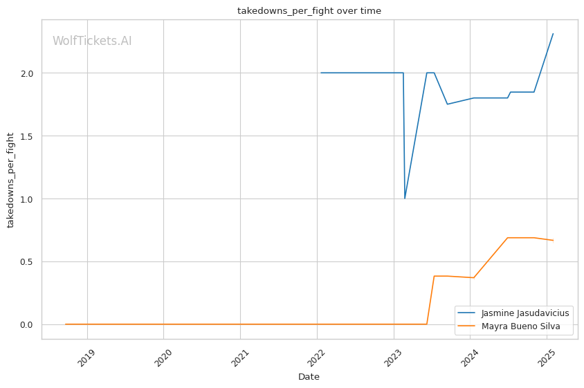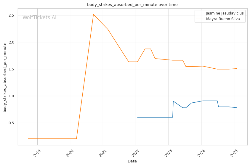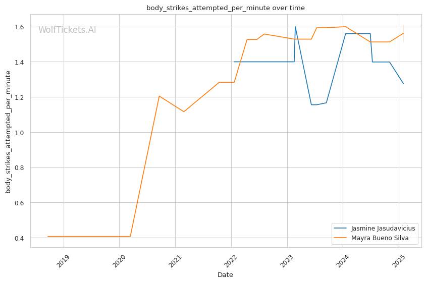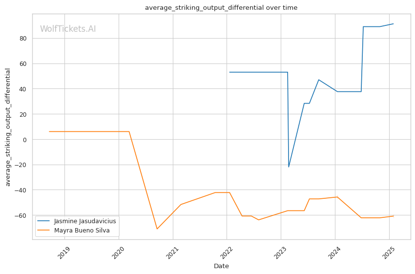 | Stat | Jasmine Jasudavicius | Mayra Bueno Silva | Weight Class Average | |
