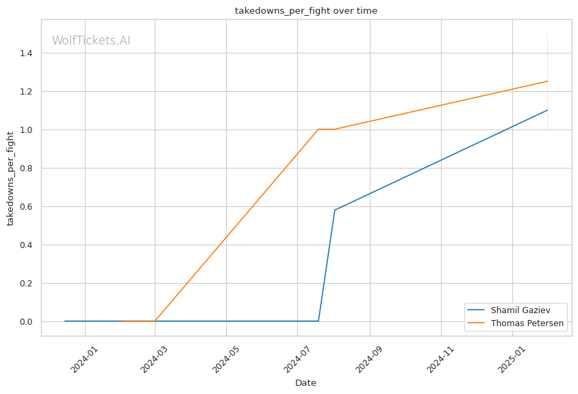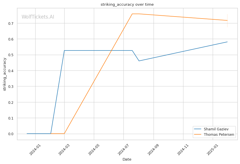 Gaziev's aggressive style and ability to maintain overwhelming pressure are decisive factors against Petersen, who has struggled against similar threats. Expect Gaziev to use his reach and clinch work to close the fight before cardio issues arise. WolfTicketsAI confidently picks Shamil Gaziev to win.
