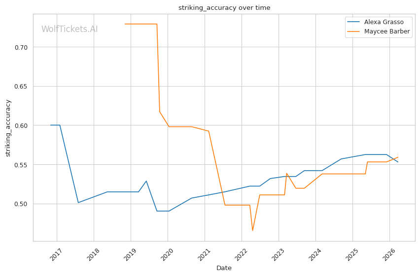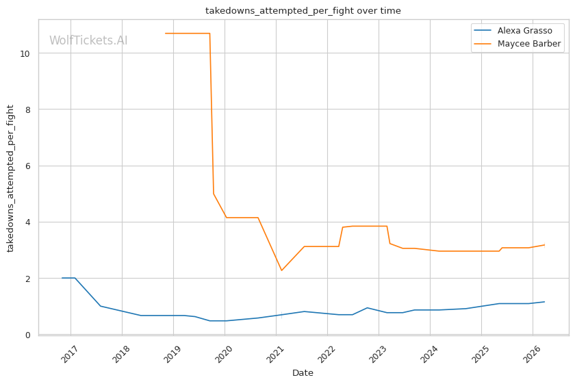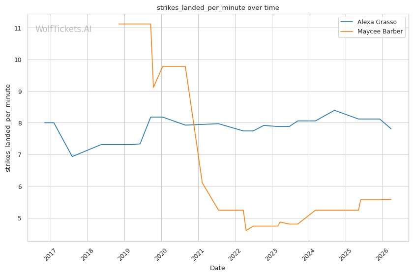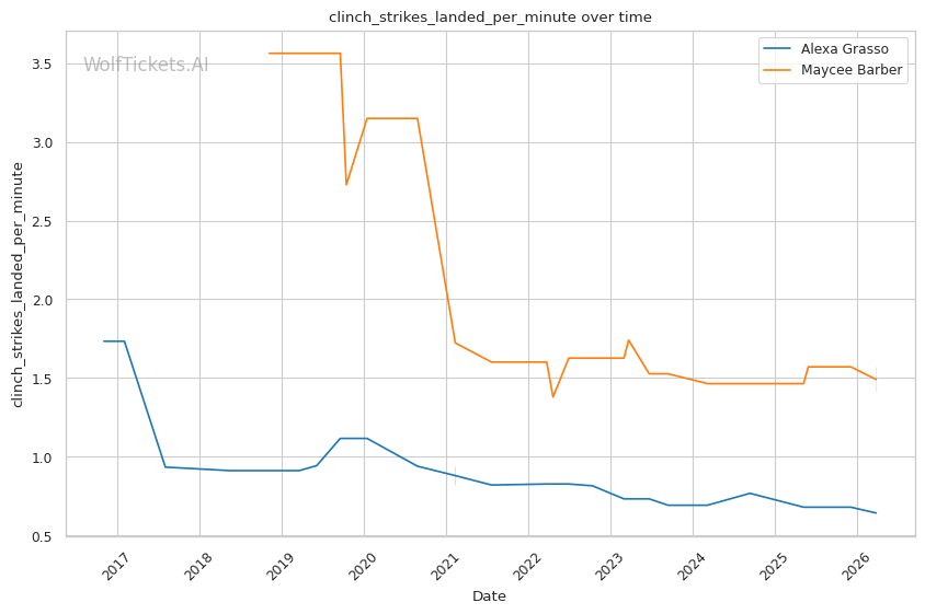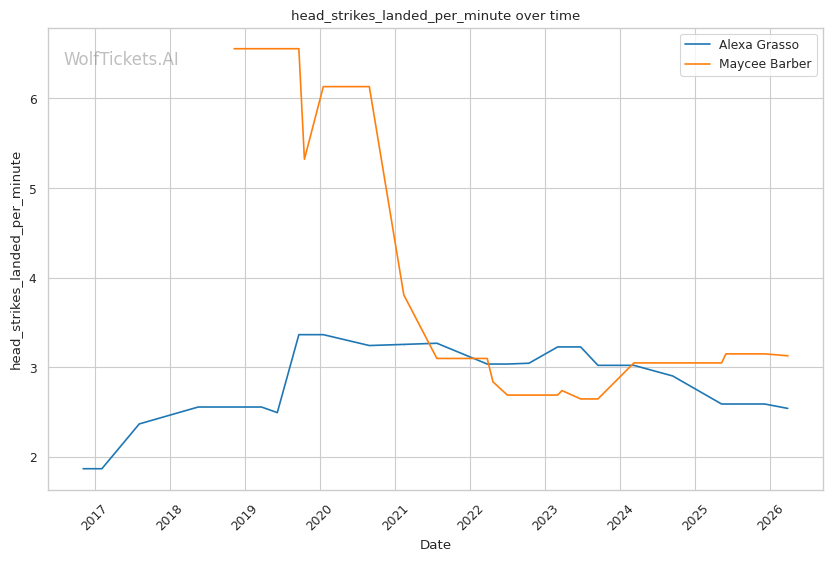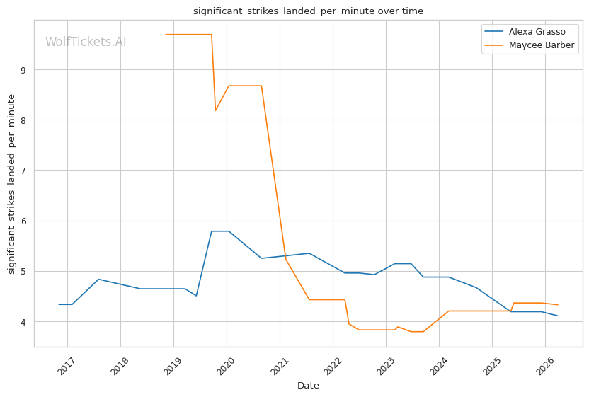 | Stat | Alexa Grasso | Maycee Barber | Weight Class Average | |