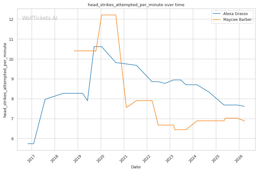 | Head Strikes Attempted per Minute | 7.616 | 6.751 | 6.518 | |