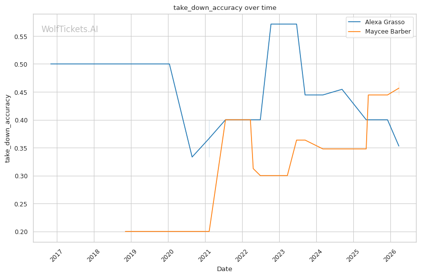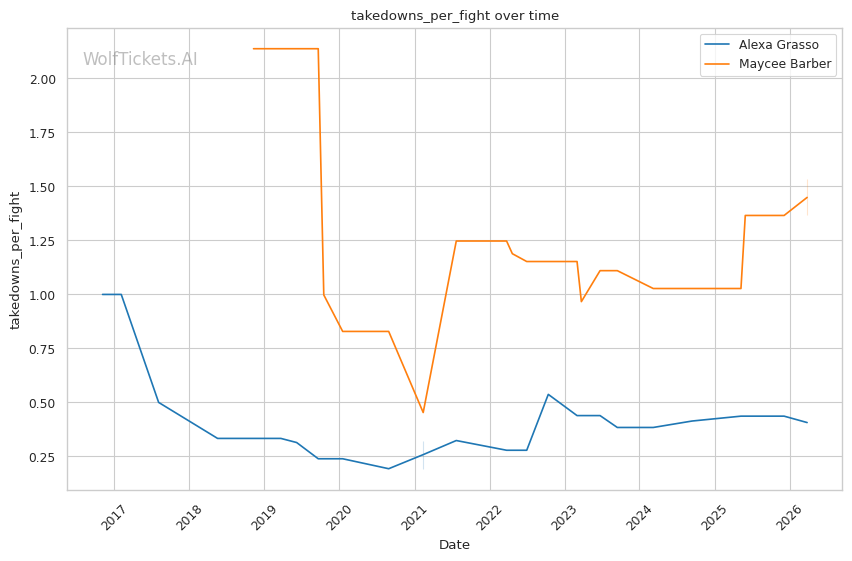 Mid-Fight Adjustments: This is where Barber's improvements become critical. She showed against Andrea Lee that she can adjust between rounds, switching from striking to grappling when needed. If Grasso's boxing is working, expect Barber to initiate more clinch work and takedowns. Her recent takedowns attempted per fight (3.45) shows she's willing to wrestle.