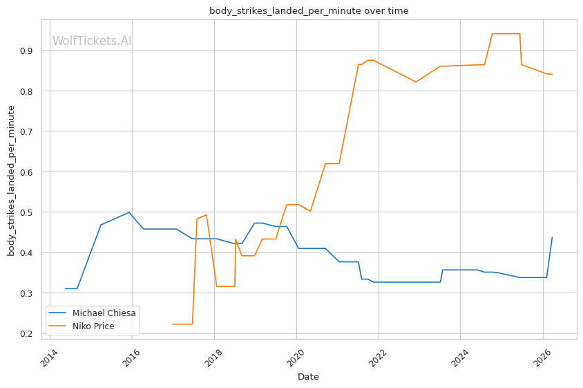 | Body Strikes Landed per Minute | 0.437 | 0.839 | 0.833 | |