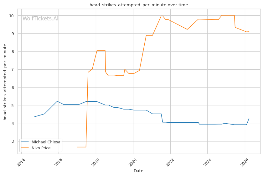 | Head Strikes Attempted per Minute | 4.256 | 9.106 | 6.602 | |