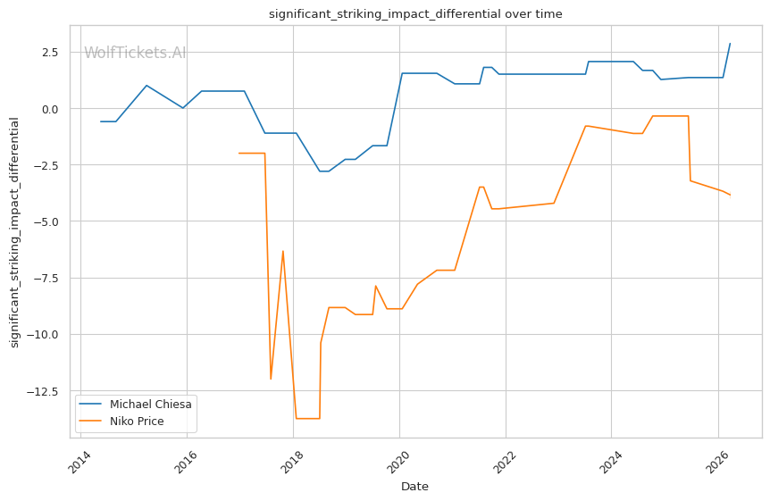 | Significant Striking Impact Differential | 2.86% | -4.00% | 5.14% | |