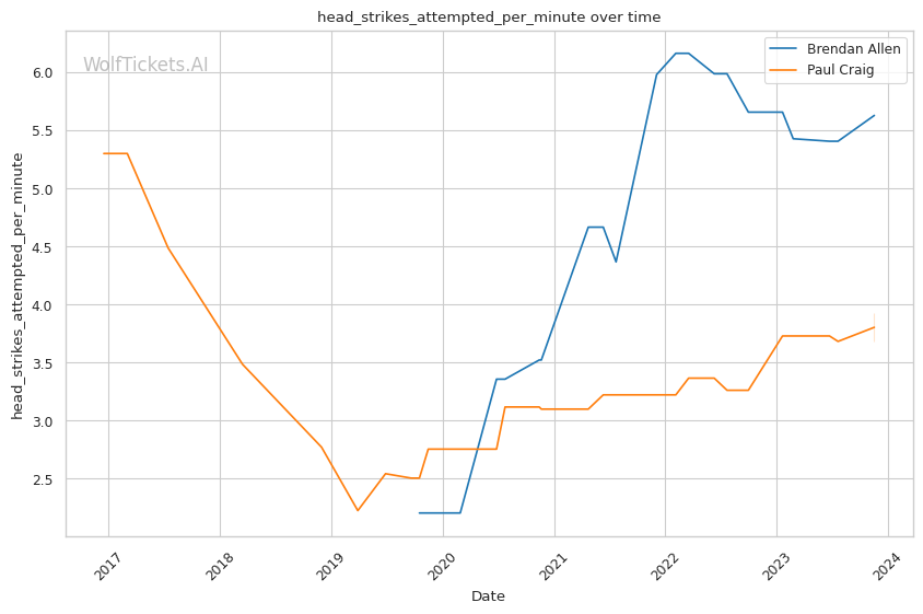 | Head Strikes Attempted per Minute | 5.627 | 3.922 | 6.374 | |