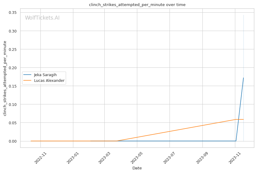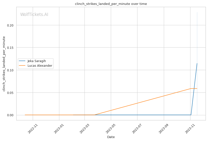 Lucas Alexander's Winning Edge: WolfTicketsAI predicts Lucas Alexander to win, and the stats support this. Alexander displays superior striking ability with higher head strikes per minute (2.5245 vs. Saragih's 0.2290) and a significant striking accuracy of 0.5375. His recent striking impact differential (14.4133) outshines Saragih's negative differential (-54.0000), indicating a more effective and damaging striking game.