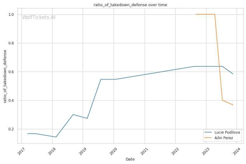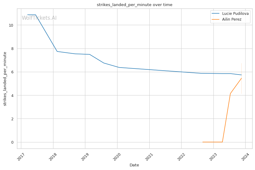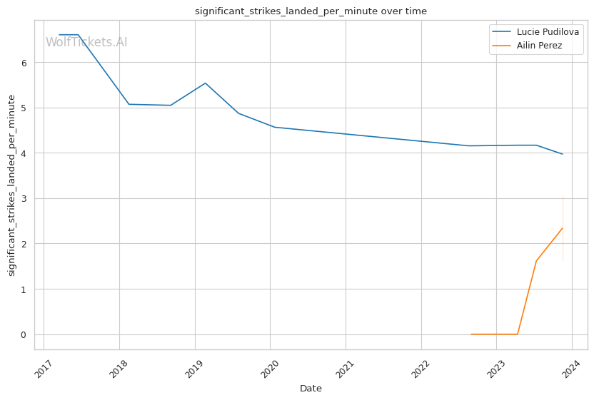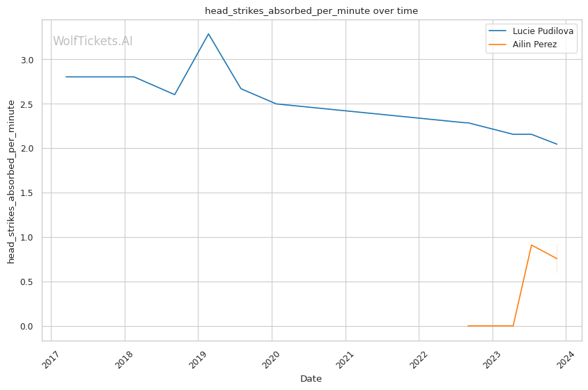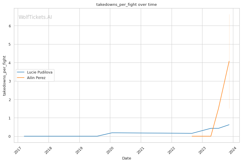 Her standout stats are in takedowns, both attempted and completed, indicating a strong ground game. While her striking stats are less impressive, they're not negligible, especially her head strikes landed per minute. This balance of ground and stand-up skills could be pivotal against Pudilova.