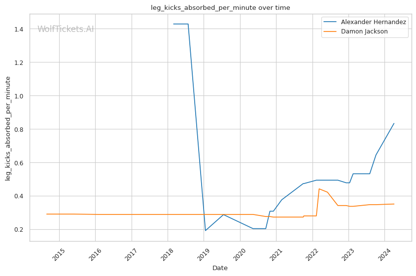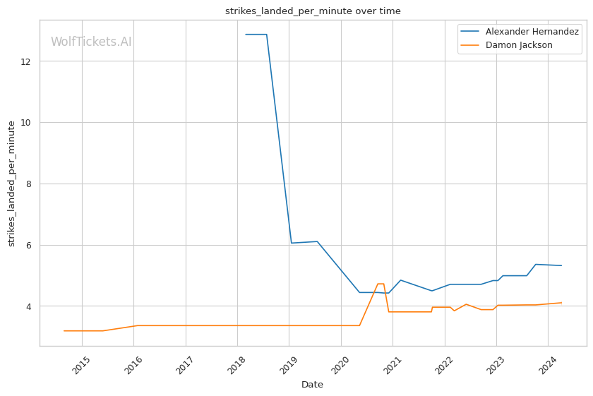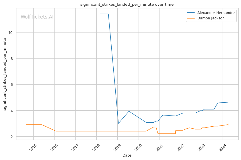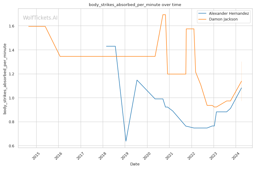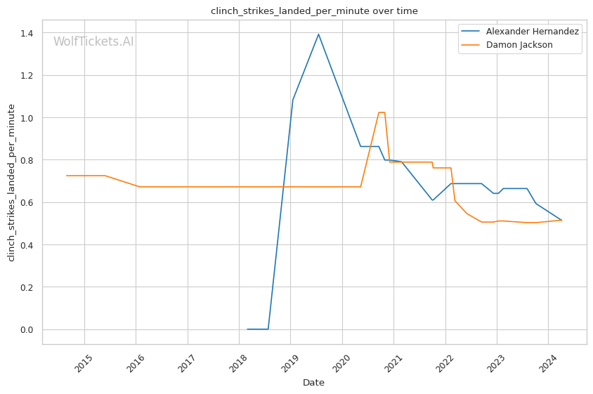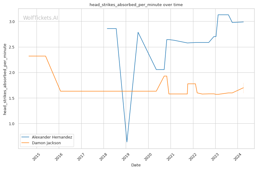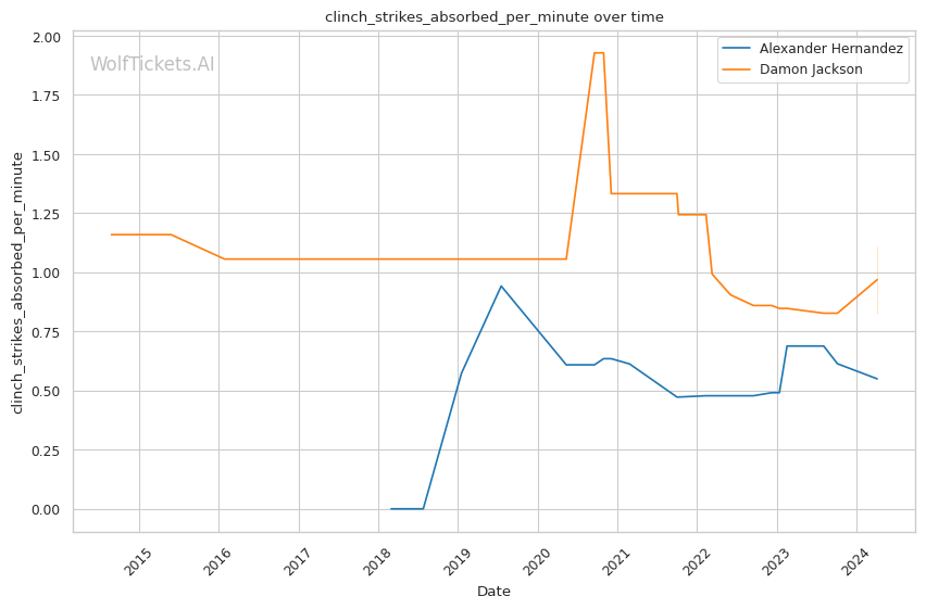 On the feet, Jackson is not as dangerous. He absorbs more significant strikes than he lands per minute. His striking defense is also fairly porous, with opponents landing 49.8% of their significant strike attempts.