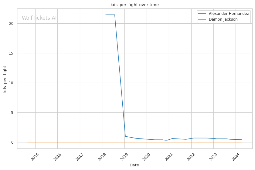 The model has a mixed track record for these two fighters. It has correctly predicted the winner in 3 out of 4 Damon Jackson fights, but was wrong in picking Pat Sabatini over Jackson. For Hernandez, the model has only been correct in 2 out of 4 fights.