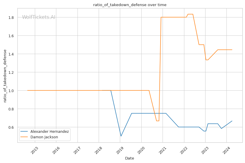 While Jackson has the submission advantage, Hernandez's 66% takedown defense (84% takedown defense in his last 3 fights) suggests he can keep the fight standing long enough to land fight-changing strikes.