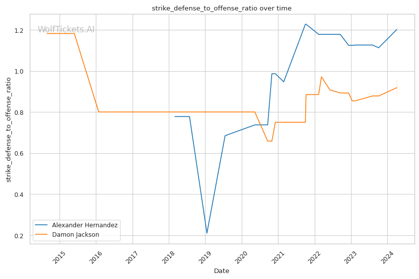 | Significant Striking Defense to Offense Ratio | 136.78% | 115.19% | 101.41% | |