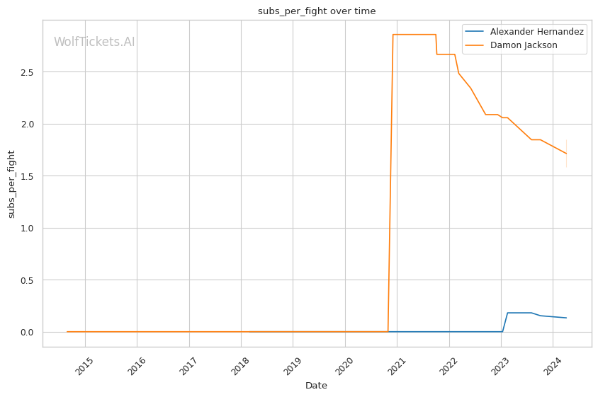 Damon Jackson is a submission specialist, with nearly 70% of his wins coming by submission. He averages an impressive 1.58 submissions per fight in his UFC career. His grappling heavy approach is built on a strong wrestling base, averaging 2.44 takedowns per fight.