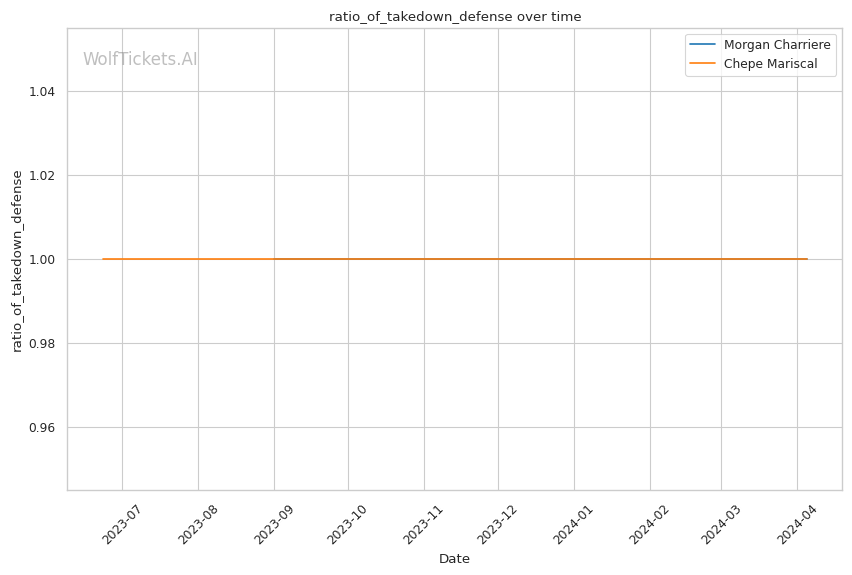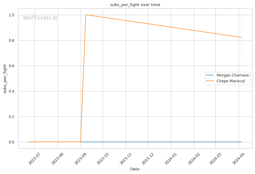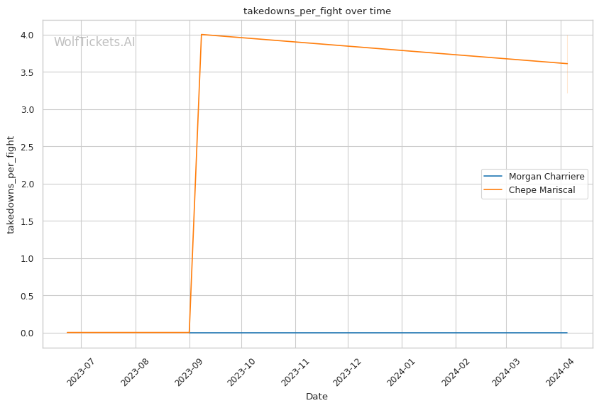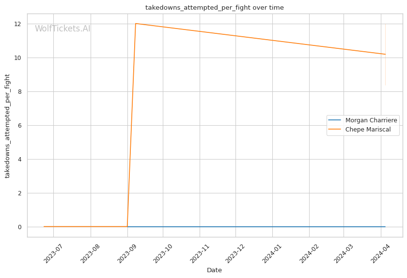 Where Mariscal really shines is with his grappling. He shoots for 8.36 takedowns per fight, securing 3.22 of them (39% accuracy). Once on the mat, Mariscal has a potent submission arsenal, with 0.64 subs per fight. He'll likely look to drag Charriere into his world and hunt for a tap. However, Mariscal's takedown entries could leave him exposed to Charriere's counter-striking.
