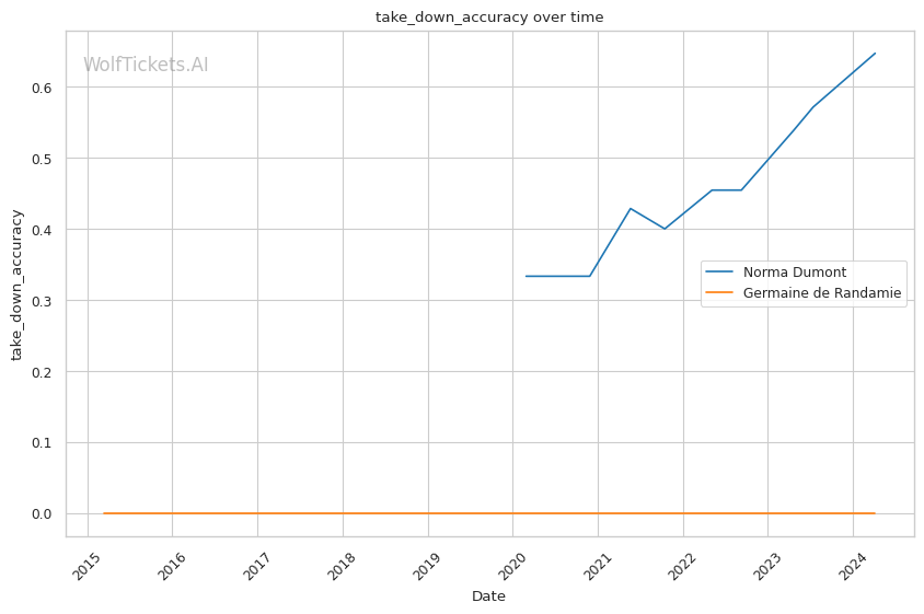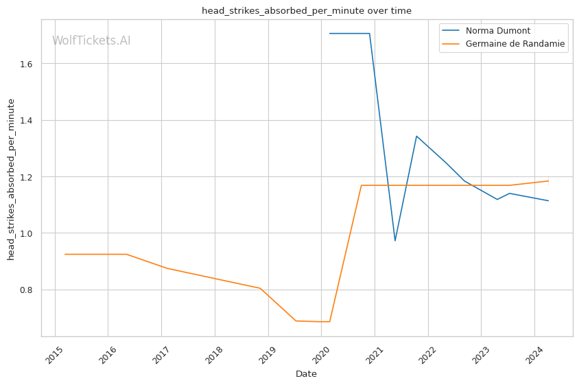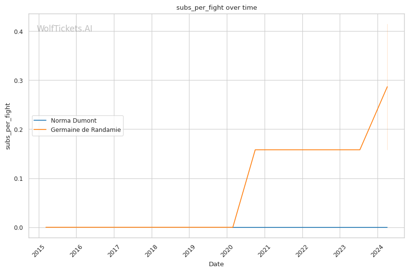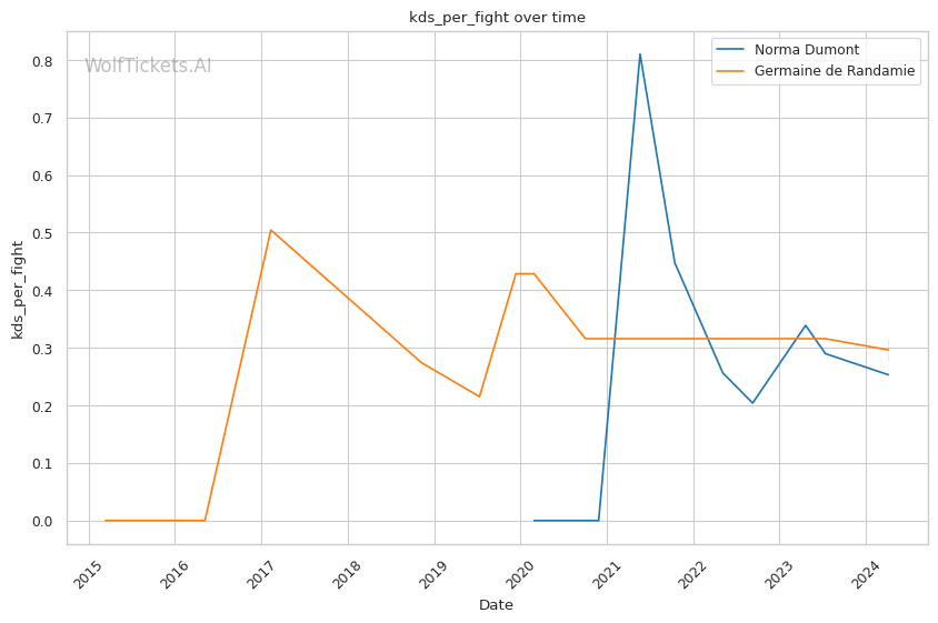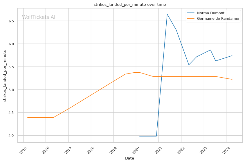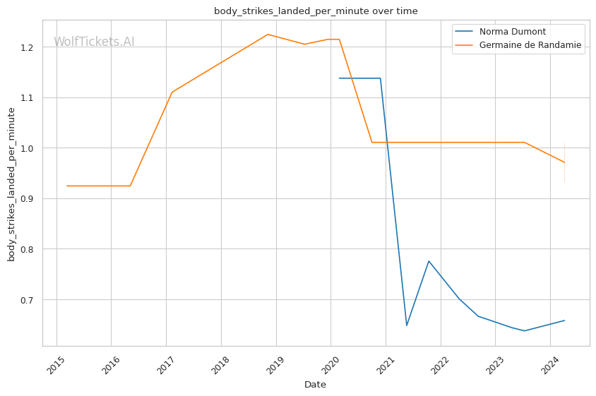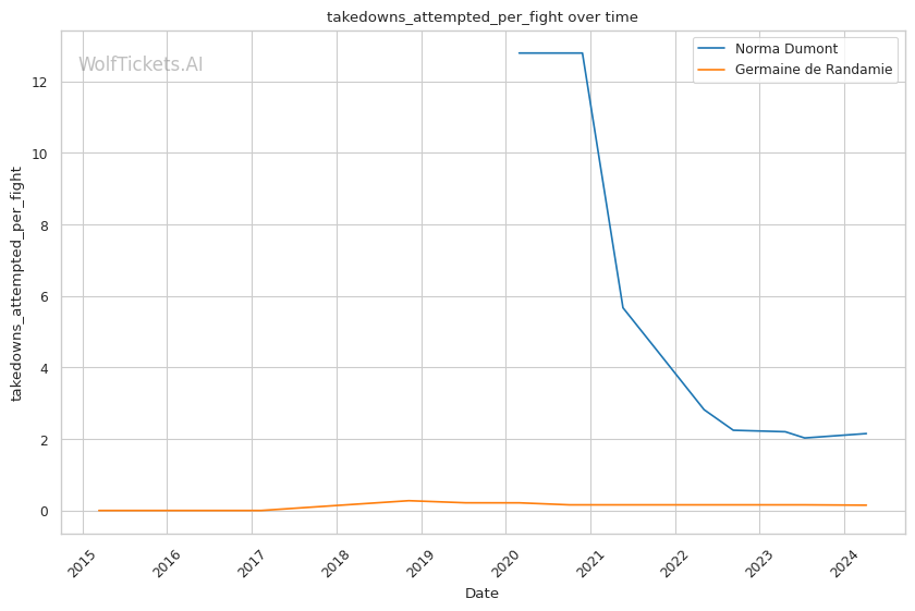 Other variables like Dumont's higher recent significant striking impact differential (+23.81 vs +6.34) and superior recent takedown attempts per fight (2.34 vs 0.19) contribute to her favorable projection. However, de Randamie's striking output and accuracy pose a threat that Dumont must navigate carefully.