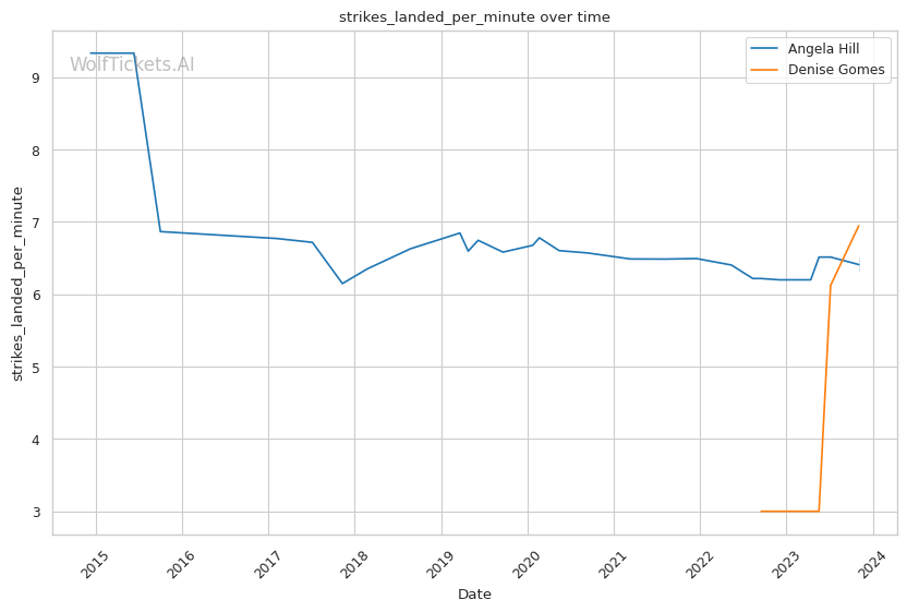 | Stat | Angela Hill | Denise Gomes | Weight Class Average | |
