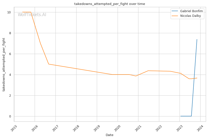 | Takedowns Attempted per Fight | 7.377 | 3.730 | 3.381 | |