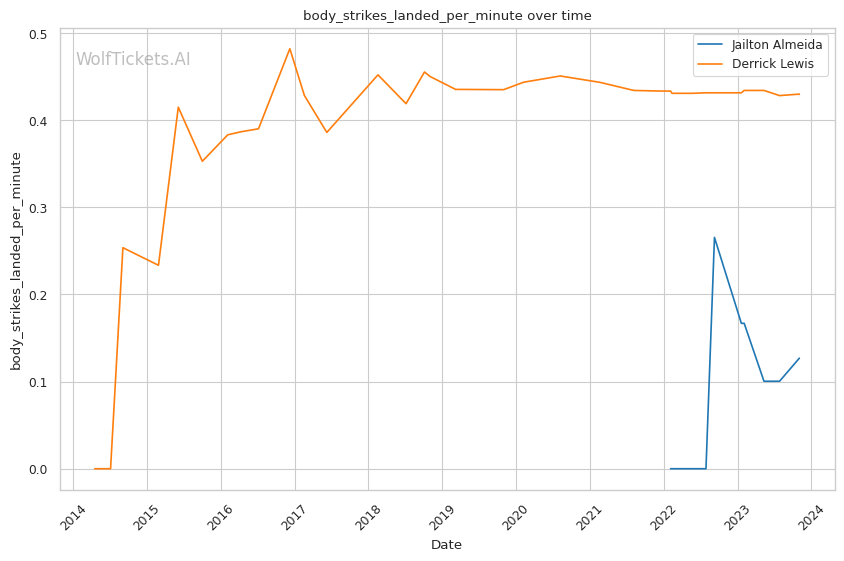 | Stat | Jailton Almeida | Derrick Lewis | Weight Class Average | |