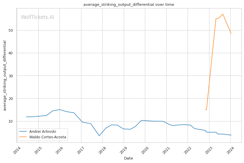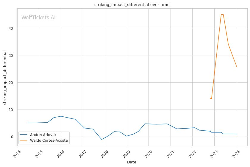 Arlovski's experience and technical striking contrast with Cortes-Acosta's power and aggression. Arlovski's ability to manage distance and pace could challenge Cortes-Acosta, who relies more on striking volume and power. However, Cortes-Acosta's youth and recent performance suggest he can withstand a prolonged bout and still deliver powerful strikes. Arlovski's recent losses by KO/TKO and submission raise concerns about his durability against a heavy hitter like Cortes-Acosta.