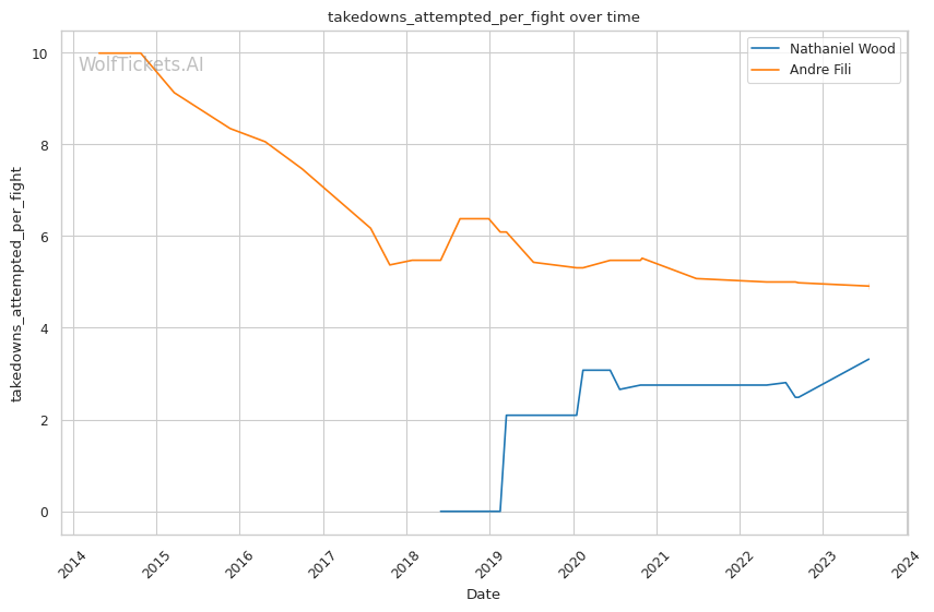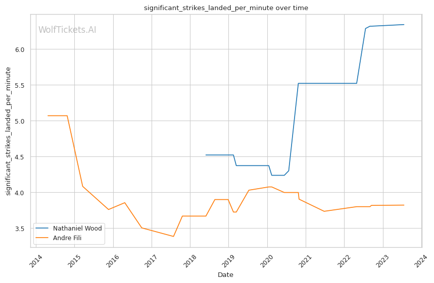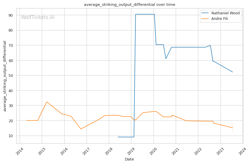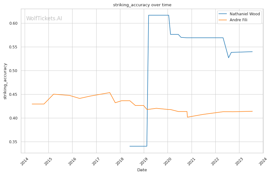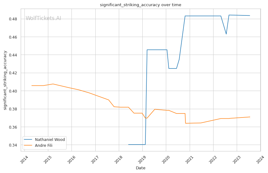 | Stat | Nathaniel Wood | Andre Fili | Weight Class Average | |