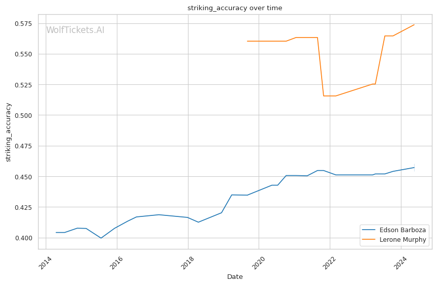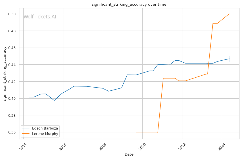 Barboza's striking defense has been a concern in recent fights, with his Recent Significant Striking Defense Percentage at 64.36%, lower than his career average of 57.86%. This could be a liability against a precise striker like Murphy.