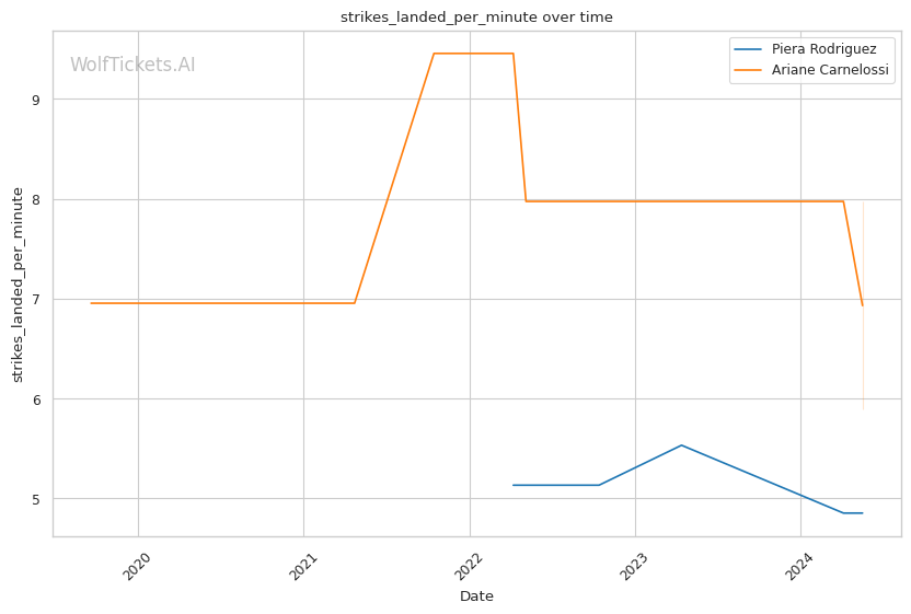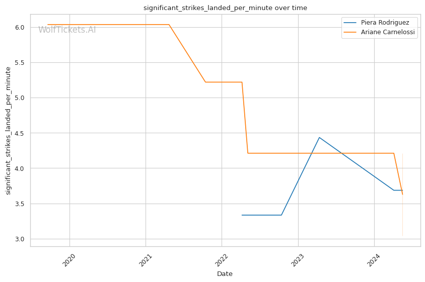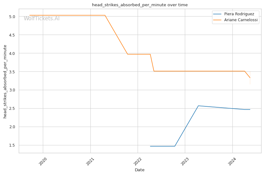 Carnelossi is a well-rounded finisher, with 0.32 submissions per fight to go along with heavy hands. She has serious power, but her striking defense is porous at just 36%. She absorbs a concerning 3.15 significant head strikes per minute.