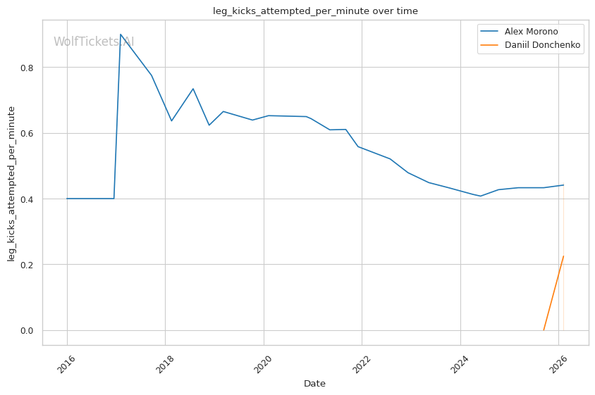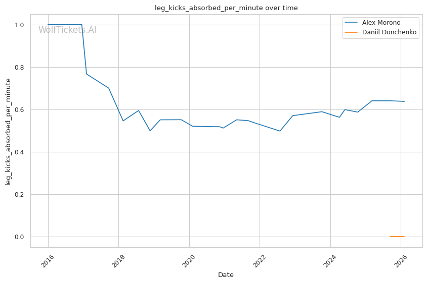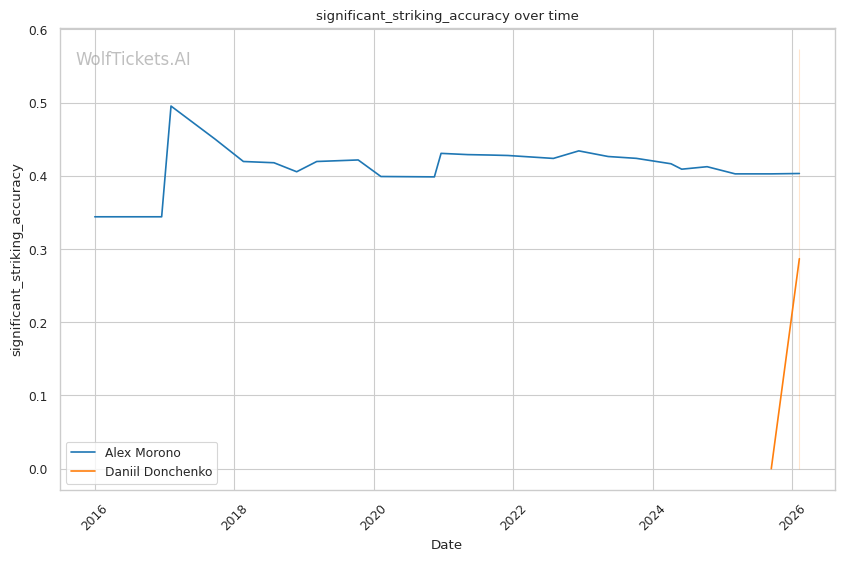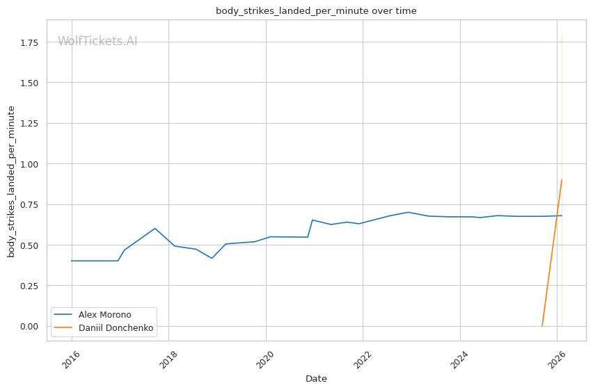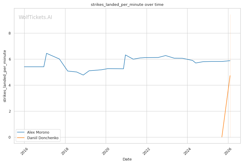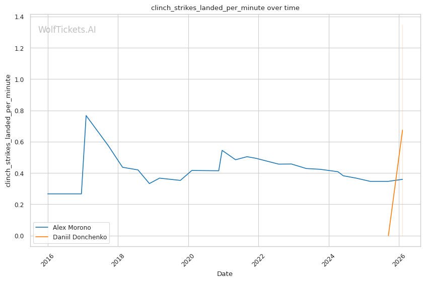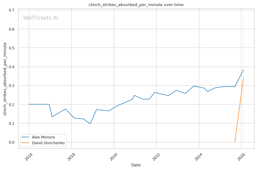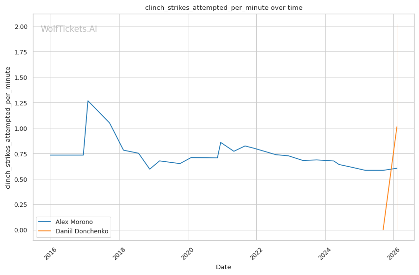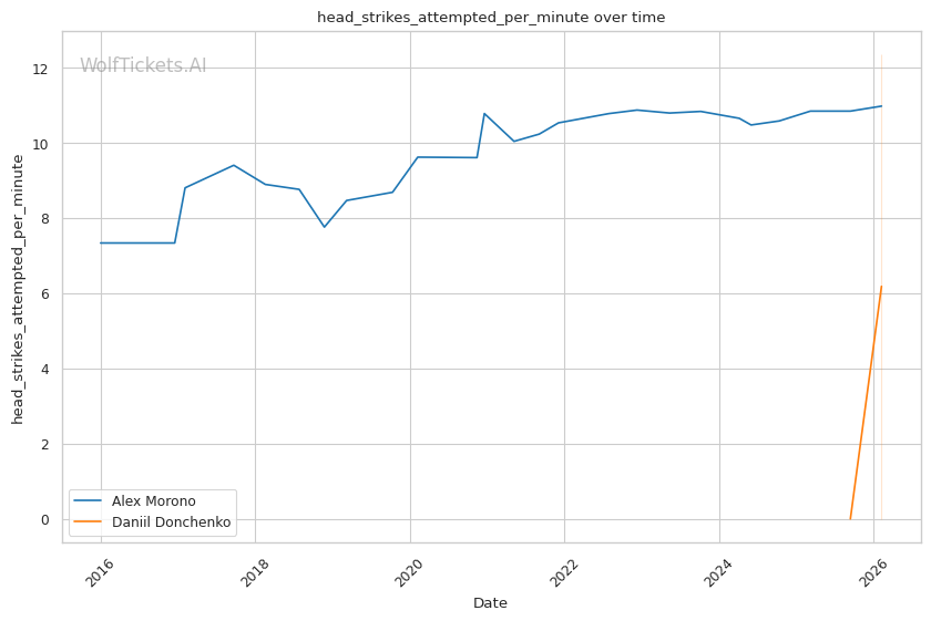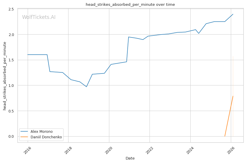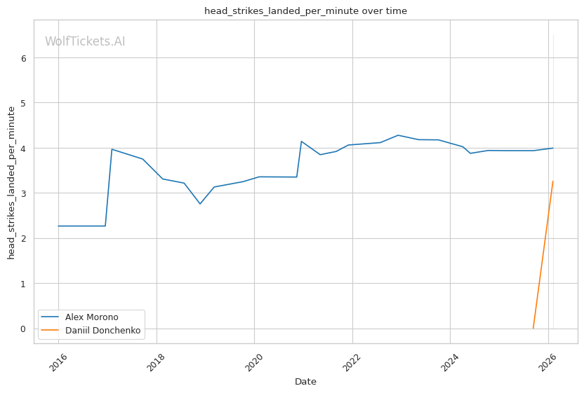 High-Volume Head Striking: Donchenko lands 6.52 head strikes per minute, well above Morono's 3.99. He throws with volume and accuracy, connecting on 57% of his significant strikes.