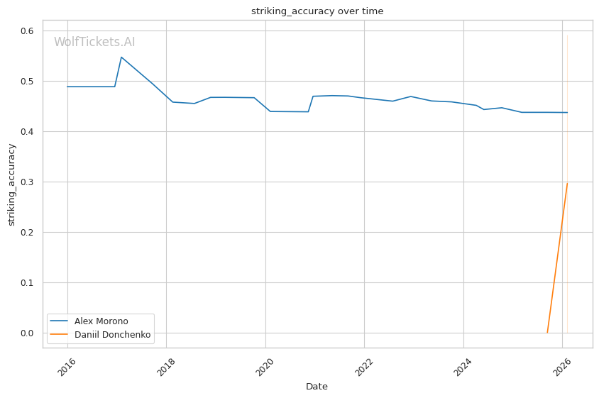 This matchup pits Donchenko's volume and pressure against Morono's experience and technical striking. The key questions: