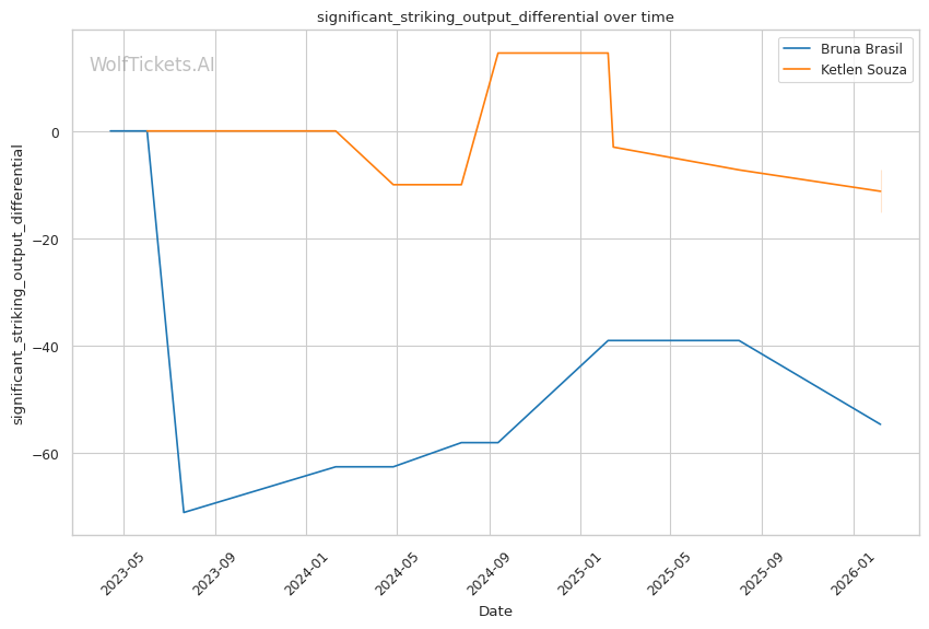 Technical Evolution: Brasil has improved her wrestling defense in recent fights, showing better takedown defense ratios. But her striking output differentials remain negative, meaning she's absorbing more than she's landing across her UFC career.