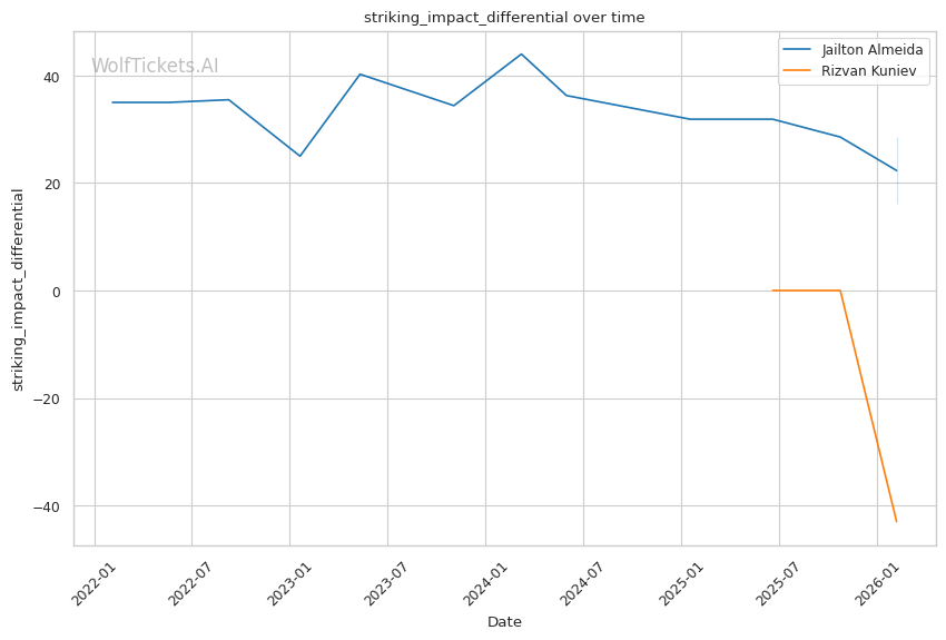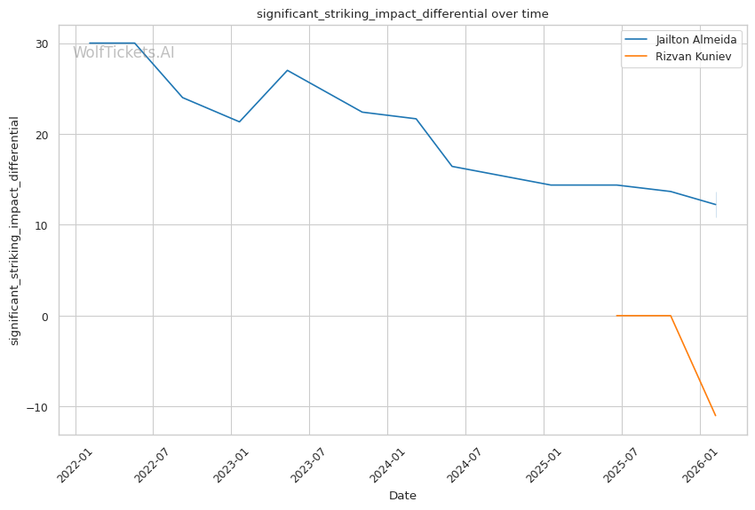Significant Striking Impact Differential (+5.0): Almeida's ability to land meaningful strikes while absorbing few gives him a substantial edge.