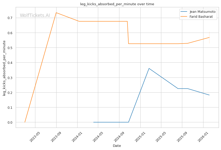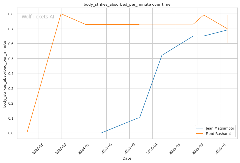 Defensive Reactions to Straight Punches: Against Font, Matsumoto consistently ate the first punch of combinations without adequate head movement. Font landed a clean 1-2 that wobbled him by lifting his head with the jab first. His striking defense percentage of 42.4% confirms this issue. Basharat's measured jab work could exploit this same opening.