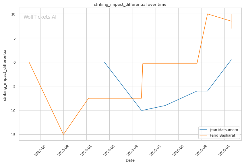 This matchup resembles the dynamic between technical point-strikers and pressure grapplers. Basharat's approach mirrors fighters like Cory Sandhagen in terms of range management, while Matsumoto's wrestling-heavy style echoes fighters who need to close distance and impose their grappling.
