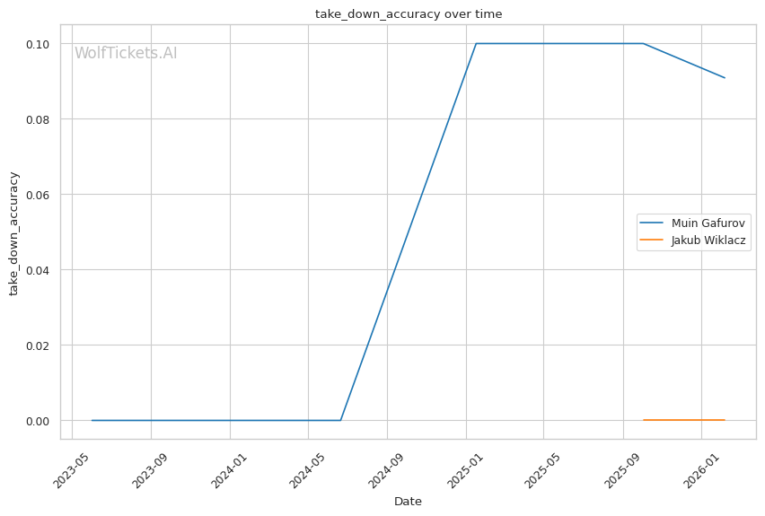 However, Gafurov's improved takedown defense (75% recently) means Wiklacz cannot simply shoot and drag him down. If Wiklacz cannot get the fight to the ground, his limited striking defense becomes a liability against Gafurov's volume.