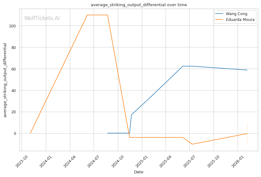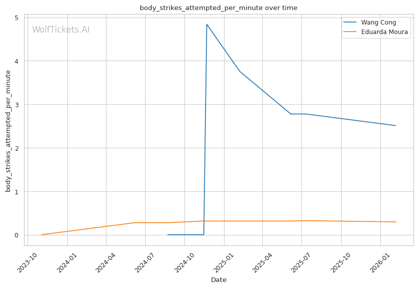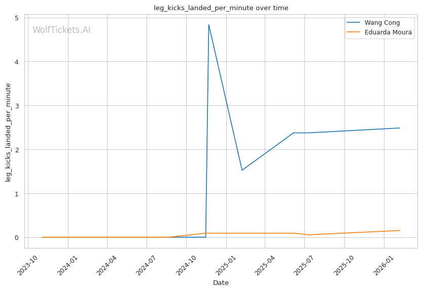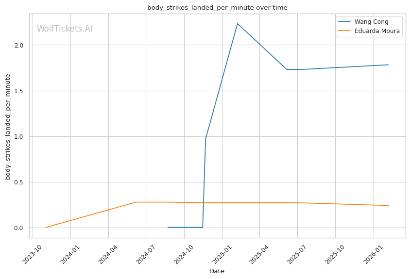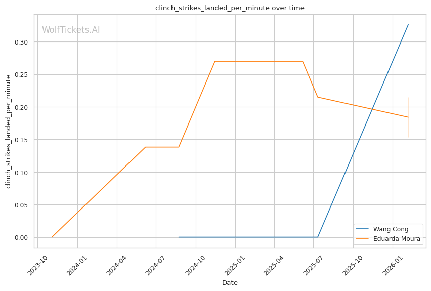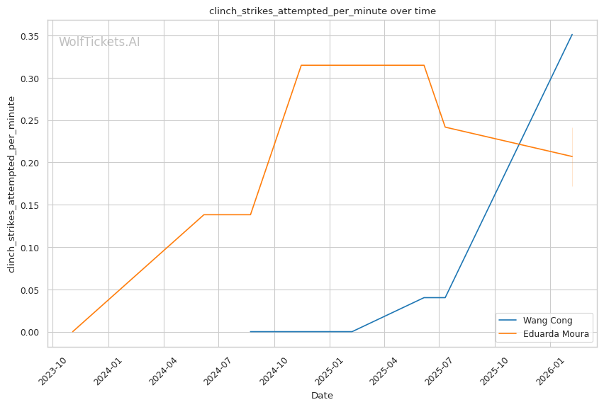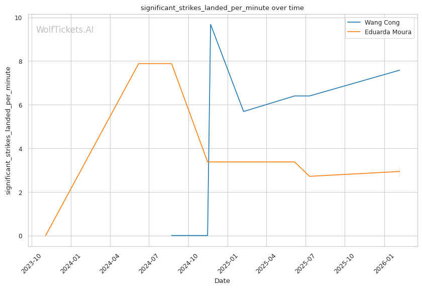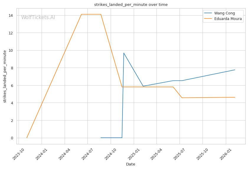 Wang's striking volume is elite: She lands 7.58 significant strikes per minute compared to Moura's 3.16. This output differential will be difficult for Moura to overcome standing.