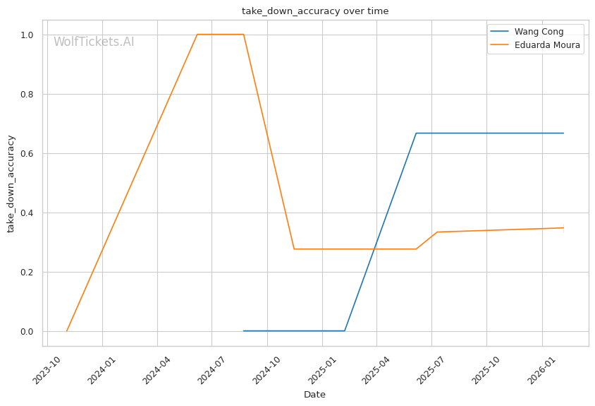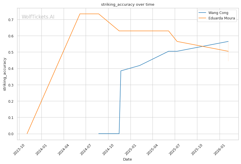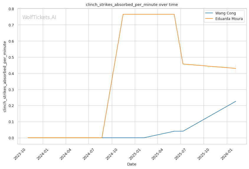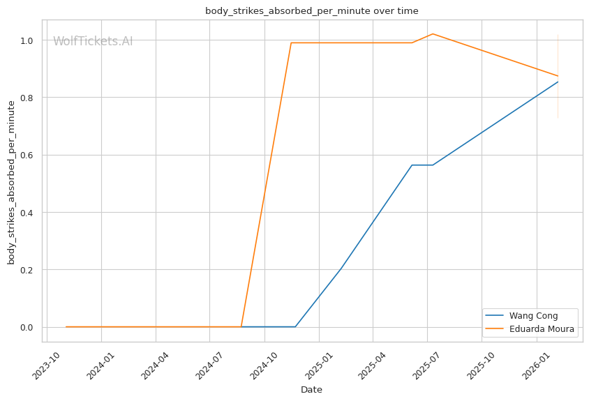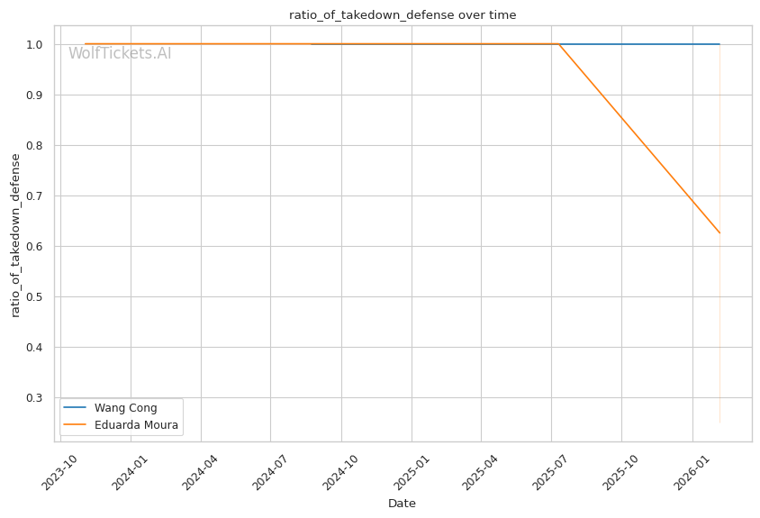 Takedown defense is the key stat: Wang's 100% TDD vs Moura's 36% accuracy creates a fundamental problem for Moura's game plan.