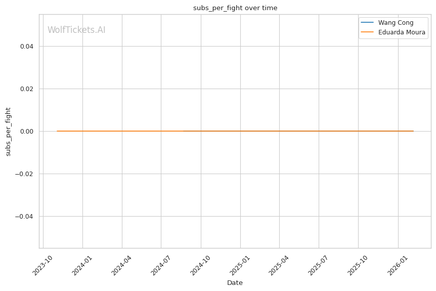 WolfTicketsAI picks Wang Cong to win, and the technical matchup supports that conclusion. Expect Wang to outwork Moura on the feet, stuff takedown attempts, and cruise to a decision or potentially find a late stoppage if Moura's cardio fades from failed wrestling exchanges.