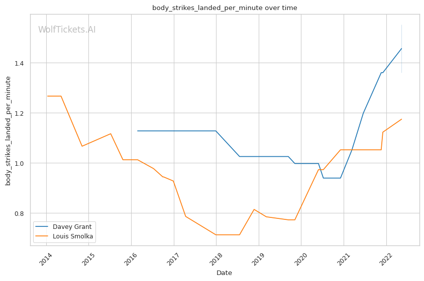 | Stat | Davey Grant | Louis Smolka | Weight Class Average | |