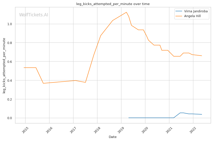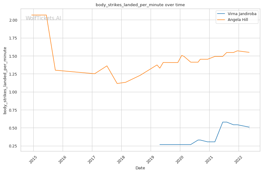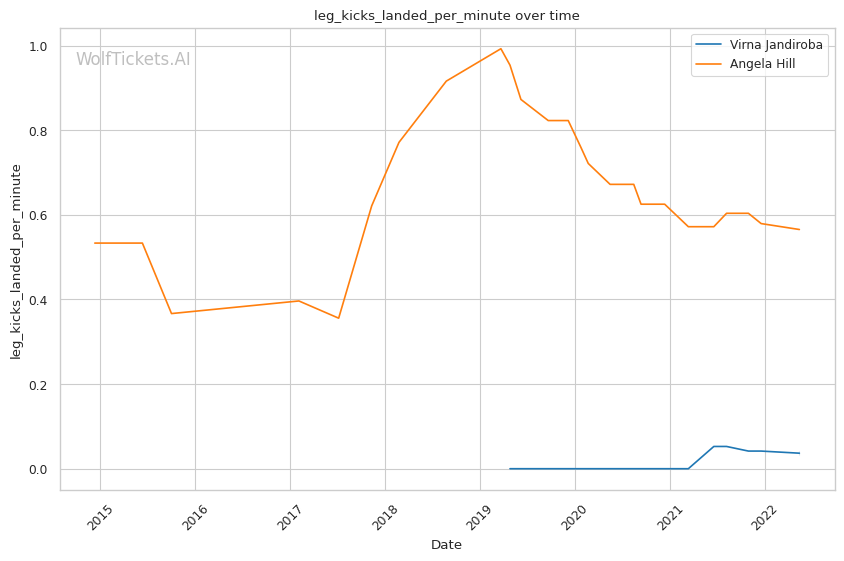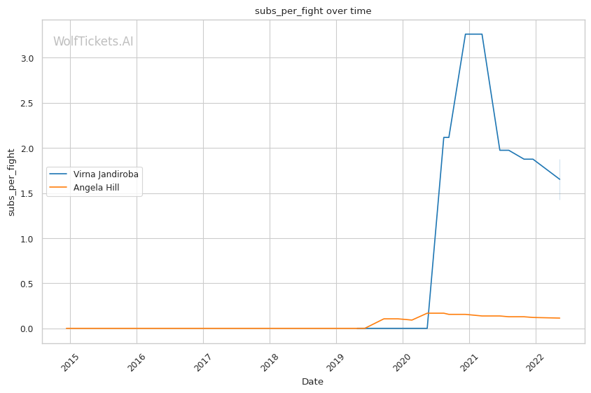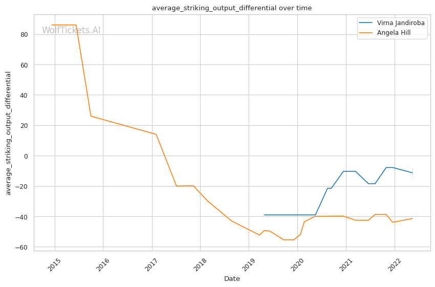 | Stat | Virna Jandiroba | Angela Hill | Weight Class Average | |
