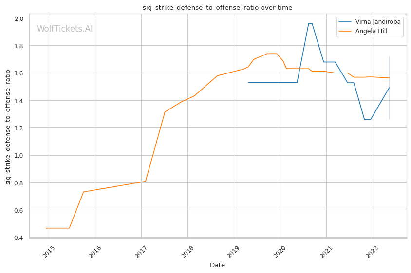 | Significant Striking Defense to Offense Ratio | 172.32% | 156.28% | 151.81% | |