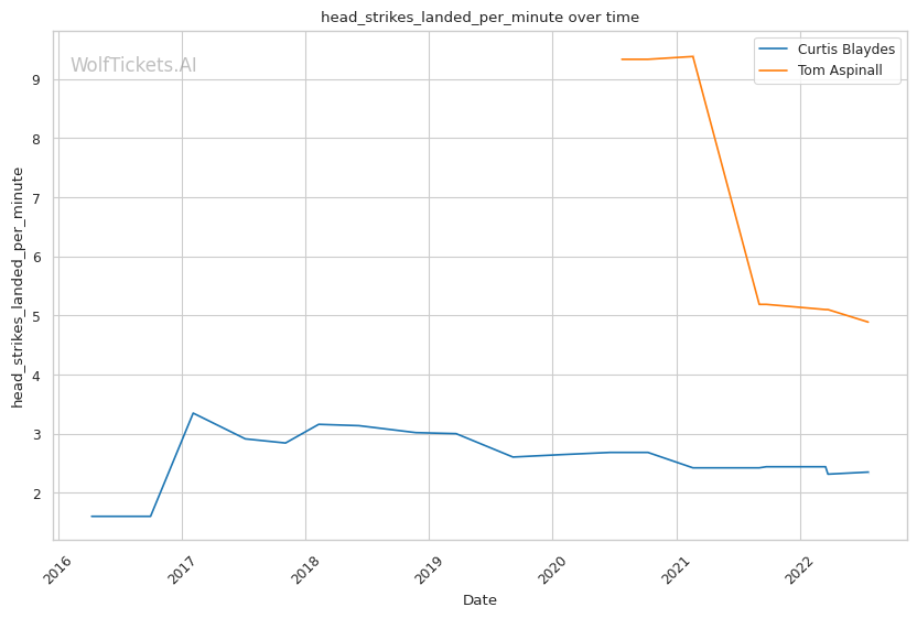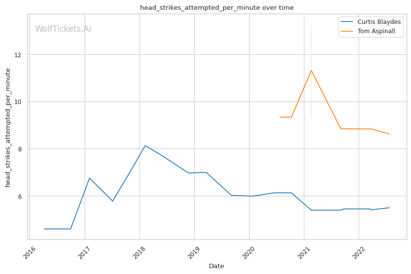 | Head Strikes Attempted per Minute | 5.582 | 8.620 | 7.085 | |