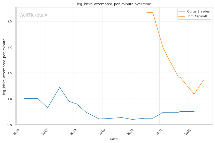 | Leg kicks Attempted per Minute | 0.769 | 1.358 | 0.904 | |