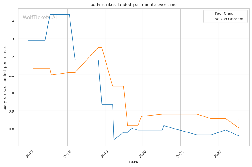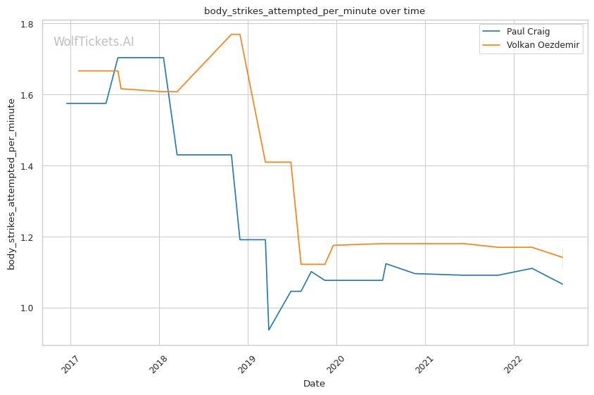 | Body Strikes Attempted per Minute | 1.066 | 1.113 | 1.131 | |