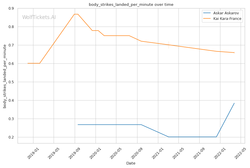 | Body Strikes Landed per Minute | 0.383 | 0.651 | 0.741 | |