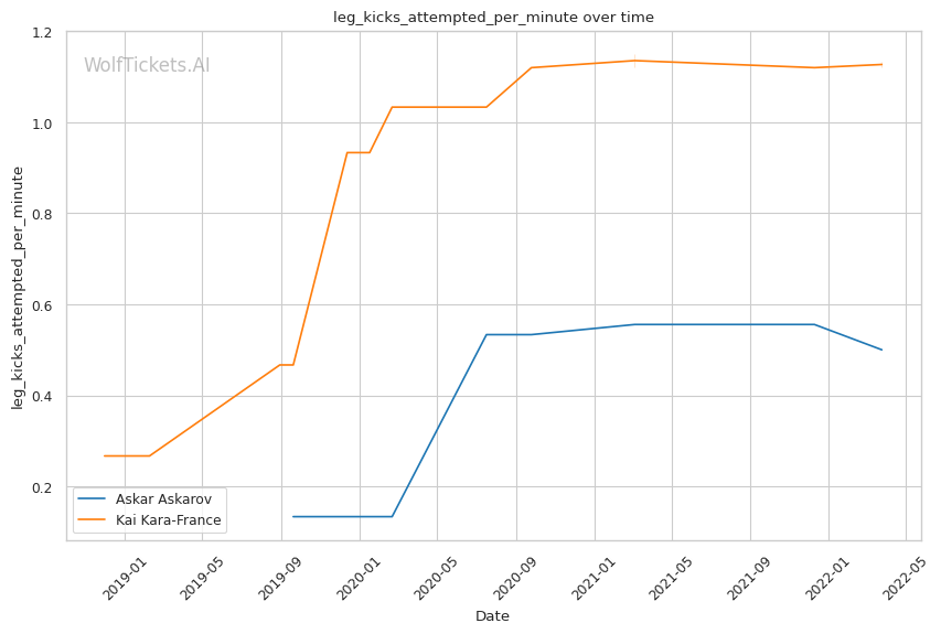 | Leg kicks Attempted per Minute | 0.500 | 1.134 | 0.840 | |