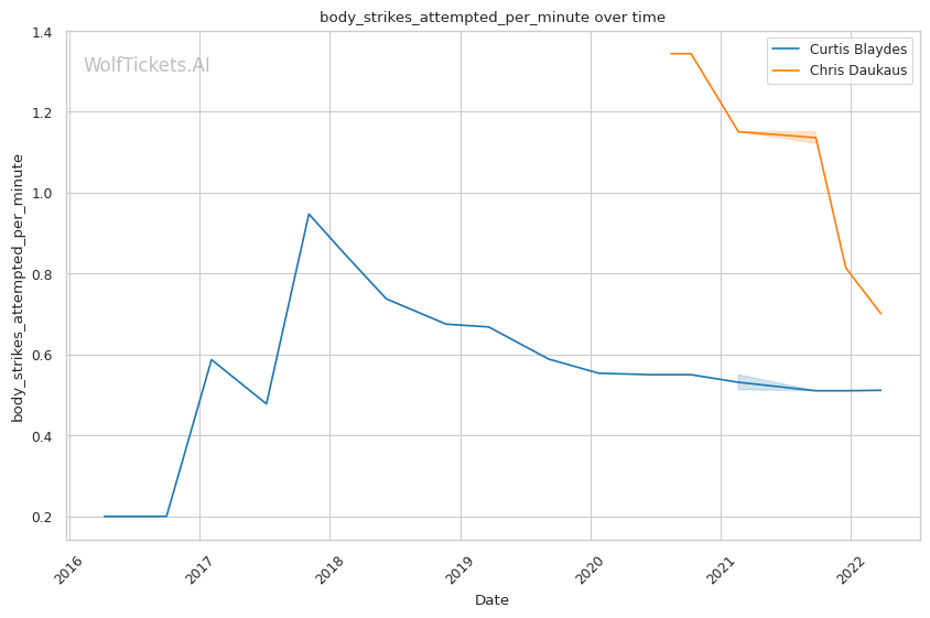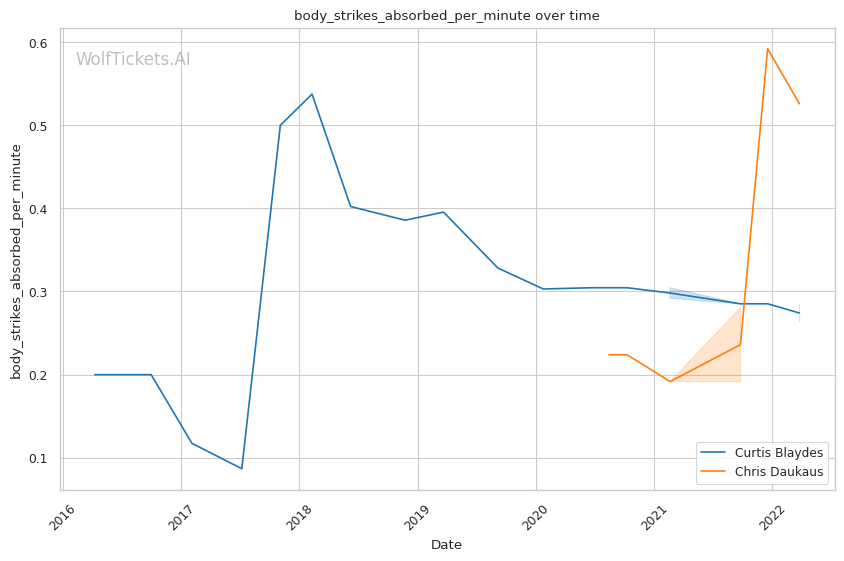 | Body Strikes Landed per Minute | 0.445 | 0.526 | 0.760 | |