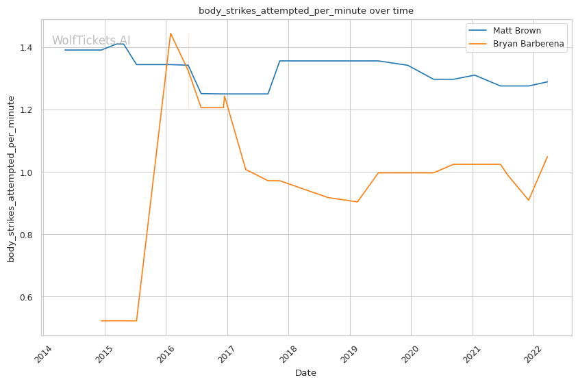 | Body Strikes Attempted per Minute | 1.301 | 1.049 | 1.164 | |