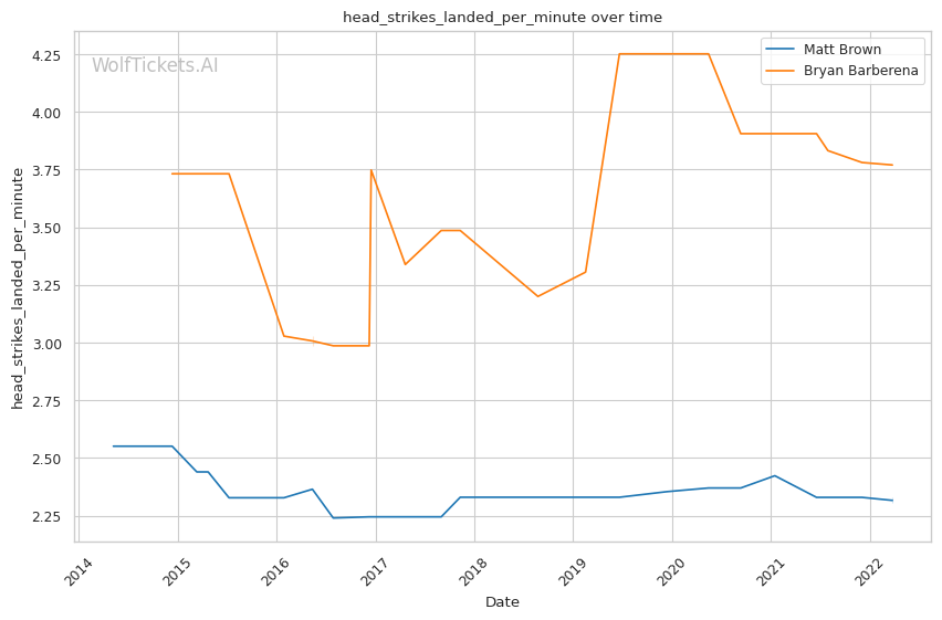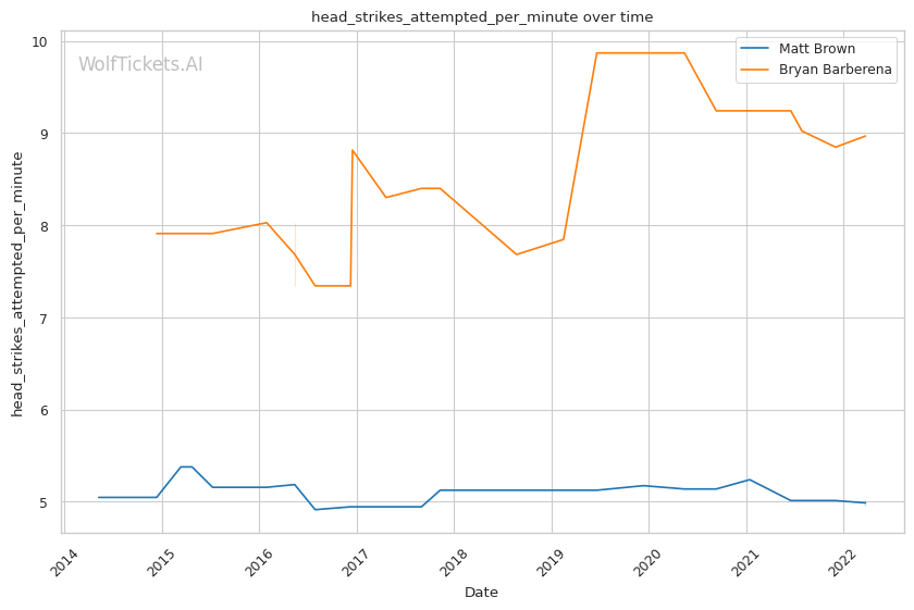 | Head Strikes Attempted per Minute | 4.961 | 8.968 | 7.490 | |
