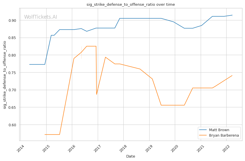 | Significant Striking Defense to Offense Ratio | 91.76% | 74.08% | 119.97% | |