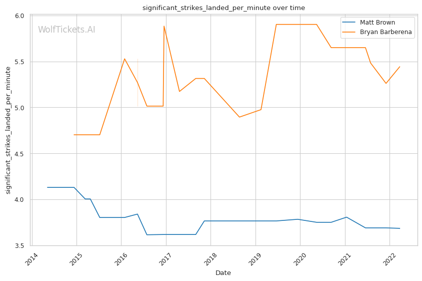 | Stat | Matt Brown | Bryan Barberena | Weight Class Average | |