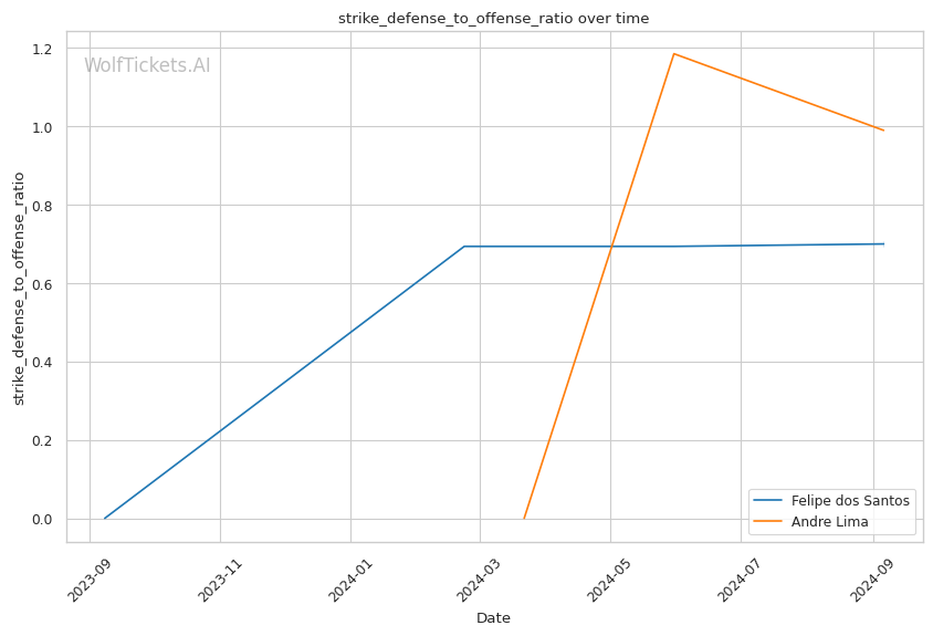| Significant Striking Defense to Offense Ratio | 76.47% | 106.17% | 108.81% | |