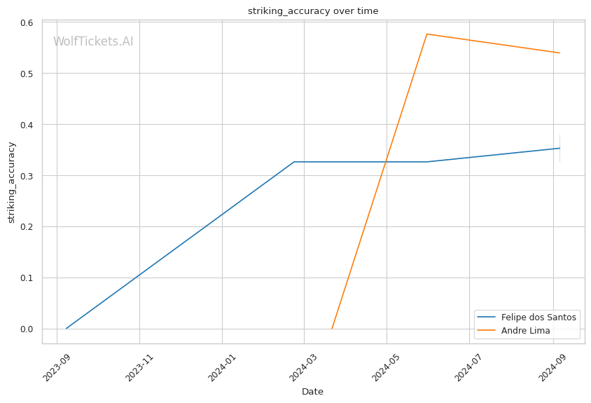 Andre Lima is the rightful favorite against Felipe dos Santos. His explosive striking, knockout power, and impressive accuracy give him a clear path to victory, especially since dos Santos has absorbed more strikes than he's landed in his recent fights.